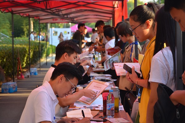 上午8时许,新生陆续前来,5个专业15个班级的工作人员按照专业划分一字排开,现场实行扫码报道,配合详细的报到流程图及充足的咨询点,实现新生报道“一站式办理”。报到后,学院还为新生送出一份暖心“大礼包”,即印有励志古诗词的精美书签、印有班级负责人联系方式的连心卡、高年级同学手绘的龙子湖地图,同时还发放了防骗攻略、宗教政策明白卡、大学资助政策知多少宣传页等,力争为新生随后的学习生活提供周到的服务。