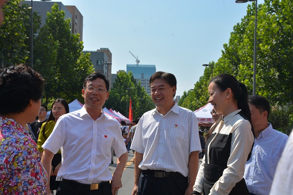 省教育厅副巡视员李金川,校党委副书记、工会主席李成吾,副校长尹新明到我院迎新现场指导工作