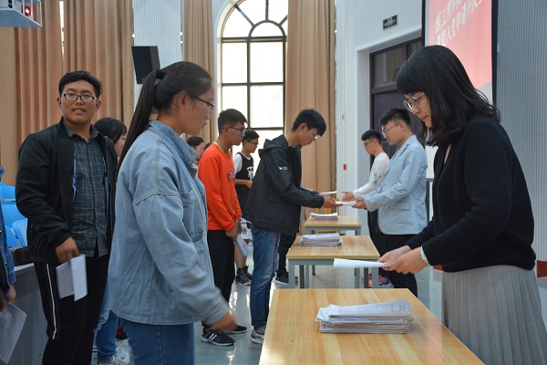 10月16日下午,我院在繁塔楼大教室2举行2018级新生递交入党申请书仪式,院党委副书记牛娟、组织员来卓、院团委副书记韩笑、2018级辅导员陈翔及全体新生共400余人参加活动。仪式由来卓主持。