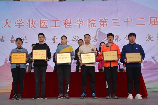 下午5时许,激烈的赛事顺利结束。2017级药物制剂1班摘得院运会团体总分第一名的桂冠,2017级动物医学一班、2017级药物制剂二班分获第二名、第三名。2017级生物工程二班等6个班级获得体育道德风尚奖。