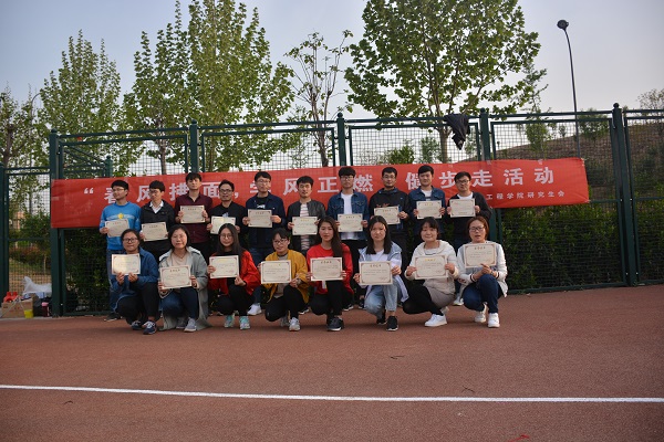 4月15日下午,我院在龙子湖校区操场举行了以“春风拂面 学风正燃”为主题的研究生健步走活动,将学风建设与强健体魄有机结合起来。