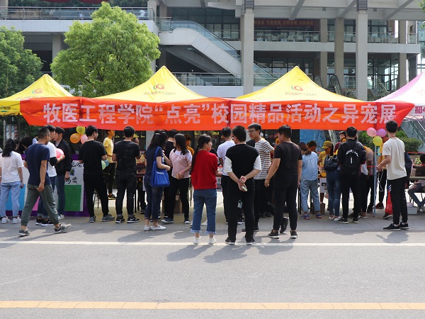 2018年5月12日,我院小动物协会联合农创空间“宠物管家”项目组在一餐厅广场举办了“点亮”校园文化活动之异宠展,本次活动共展出豹纹守宫、玉米蛇、鬃狮蜥等11种异宠,我院临床兽医系教师、宠物管家项目指导老师仝宗喜到现场指导。