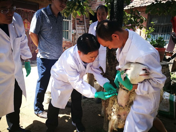 志愿服务队为贫困户家中饲养的羊注射四联预防疫苗