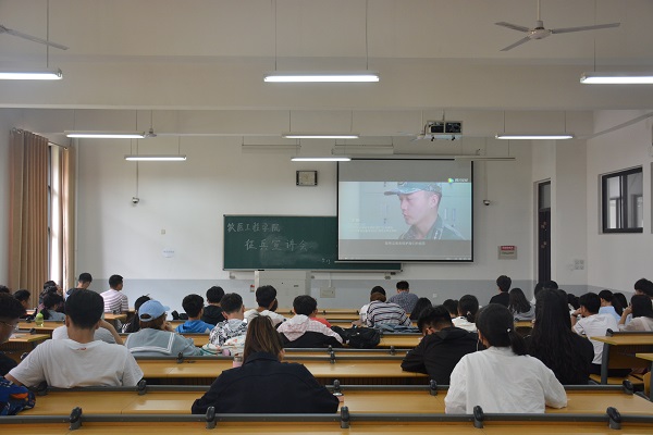 会议伊始,陈翔传达了我校关于2019年兵役登记和普通义务兵征兵事项有关通知,从兵役登记对象、登记时间及信息、征兵对象、应征入伍条件等4个方面为与会人员进行详细阐述。随后,他为参会人员介绍了《中华人民共和国兵役法》的相关条例,鼓励符合条件的学生积极报名,以向上之姿成热血青春。之后,我院退役学生常腾上台,向与会学生分享自己的参军经历与感悟收获。最后,与会人员一同观看了《2019年征兵宣传片》。