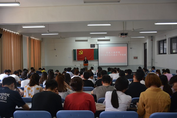毕业生最后一节党课是我院毕业生党员“六个一”系列教育活动重要的组成部分,旨在加强毕业生党员的党性教育,增强党性修养,走上社会之后继续身体力行发挥先锋模范作用。(文/韩笑)