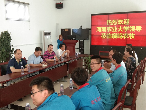 每到一处实习点,李奎一行不顾天气炎热和奔波劳累,首先到生产一线了解学生的实习情况。在企业会议室,学院与实习企业、实习学生召开了实习座谈会。实习学生逐一讲述了自己的实习岗位和在实习过程中学到的知识技能,并对学院领导和老师不远千里前来看望表示感谢。一名在银川晓鸣农牧公司实习的女生在分享实习心得时,情不自禁地流下了感动的眼泪。座谈会上,田亚东等实习指导老师还就养鸡场常见的专业问题,对实习学生进行了现场提问,以考察学生对专业知识的掌握情况。李奎代表学院对企业为我院学生提供的实习岗位及对我院教学实习工作的支持表示由衷的感谢,诚挚邀请企业到学院开展进一步交流,以期在实践教学方面展开深度合作。李奎期望同学们通过这一段的实习,把专业技能学到手,把先进的企业管理经验、理念和文化学到手,同时,把河南农业大学实习生的美好印象和靓丽名片留下,把友谊和风采留下,为校企进一步合作做出应有的贡献!