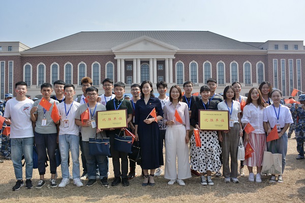 在我校2019级学生军训会操暨总结表彰大会上,我院新生凭借军训期间的优秀表现,获得“2019级学生歌咏比赛优胜单位”、“2019级学生军训内务卫生优胜单位”两项荣誉。