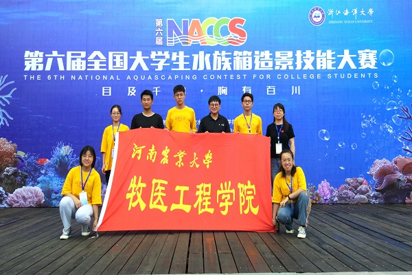 我院派出2位指导老师和6位学生参加了水陆缸组、大缸组、中缸组微型缸组的比赛。经过激烈角逐,我院17级生物工程绍?班郭萌的作品《枕石漱流》获得水陆缸组一等奖,17级动物医学4班何科、17级生物工程2班刘合阳、17级商务英语2班袁苗苗(我院水族科学协会成员、外国语学院学生)合作的作品《邪径沧海》获得大缸组二等奖,18级计算机科学4班韩宏昌(我院水族科学协会成员、信息与管理科学学院学生)的作品《河路之源》获得中型缸二等奖,17级动物医学1班袁浩芳的作品《寻趣》获得微型缸优秀奖。指导教师孙向丽、刘变枝获得优秀指导教师奖。