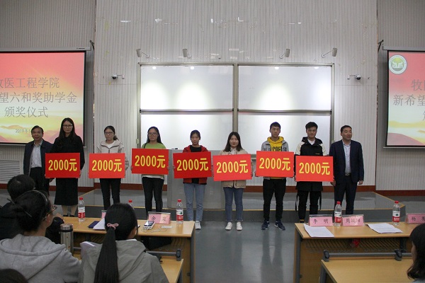 活动现场,余果宣读了我院关于颁发“新希望六和奖助学金”的决定,周端阳、李明为受助学生颁奖并现场合影留念。