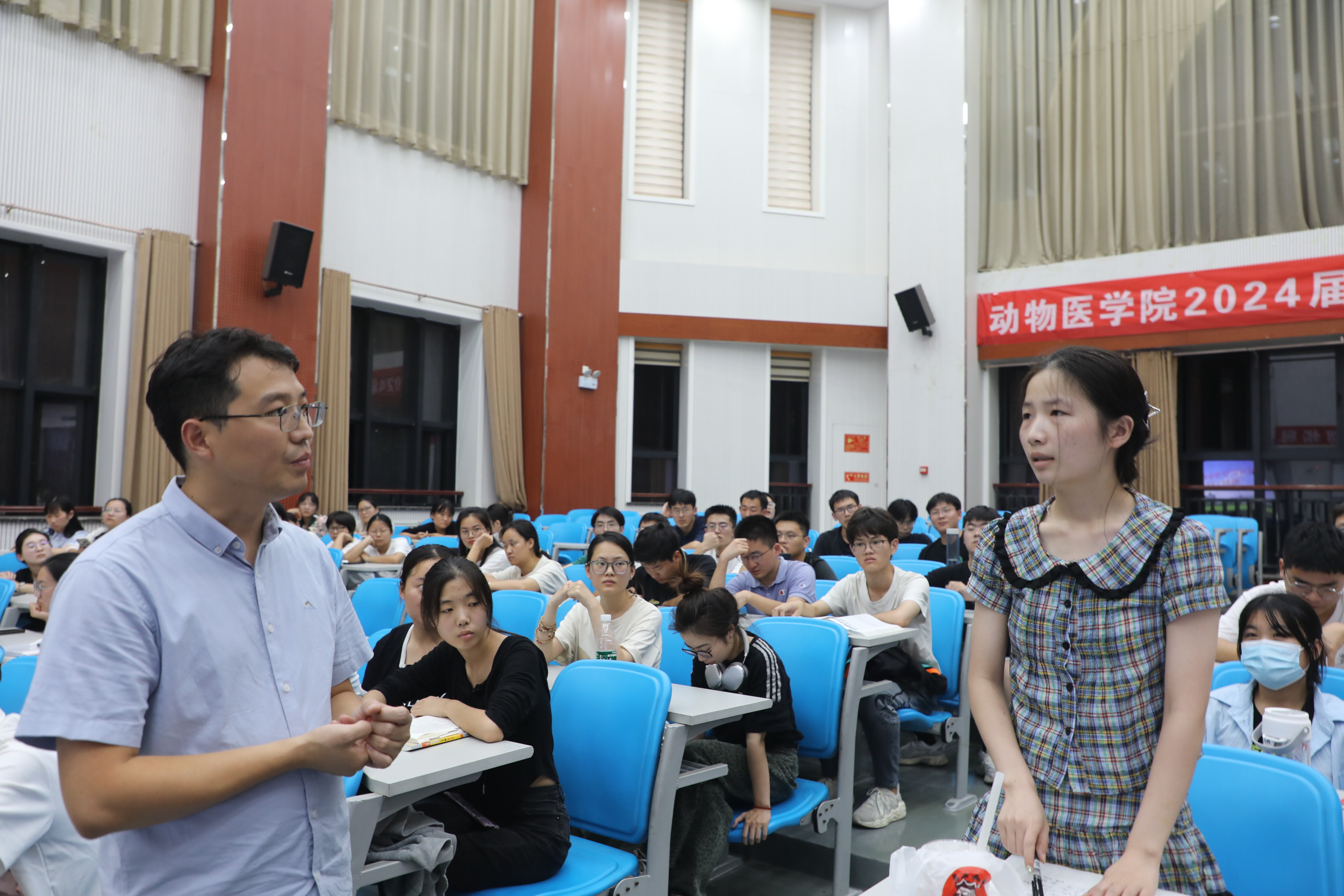 为全方位、多层次地为2024届毕业生提供指导,9月11日晚,我院在龙子湖校区繁塔楼C区大教室四召开2024届毕业生考研指导会。院党委副书记杜家方、预防兽医系党支部书记、系主任李永涛、院团委书记张心晨、院团委副书记冯佟出席会议,全体2024届学生参加会议。