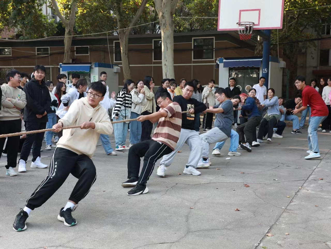 为进一步展现大学生积极向上的精神风貌,增强团结合作精神,提高新生的融入感和校园归属感,10月14日上午,我院于文化路校区东北角篮球场举办2023级“迎新杯”新生拔河比赛,辅导员冯杰、全体助理班主任和23级全体学生参加比赛。