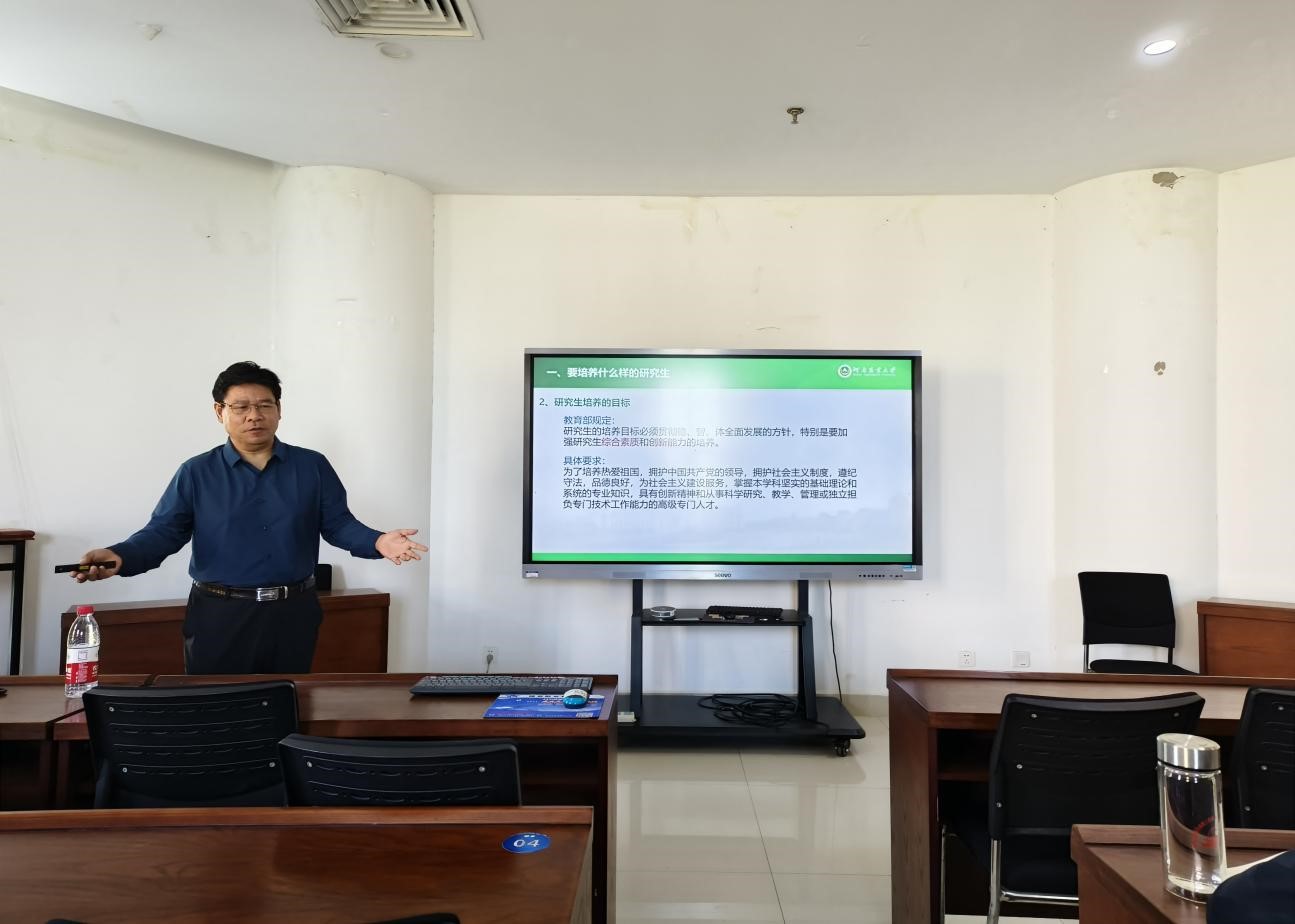 韩立强表示,新晋研究生导师培训是学院研究生教育工作的重要内容,是落实立德树人根本任务的重要举措,鼓励各位新晋导师不忘初心、牢记职责、提升能力,为推动学院研究生教育迈上新台阶贡献力量。